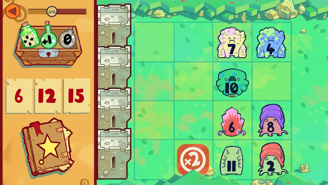 After rescuing all the castles in the Sorcery Sea you'll be back on dry land and squaring off against more challenging groups of monsters. You'll unlock a new potion to help you handle the greater difficult: the Zero potion! You can drop this potion onto any monster to instantly change its number to zero.