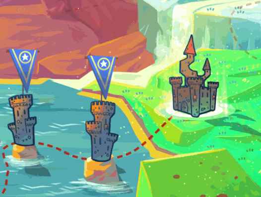 We've added some life to the world map - you'll see mist rising from the waterfall, water splashing against rocks in the harbor, and an occasional flock of birds. We've also updated the particle effects that show for a new castle to something much more shiny!