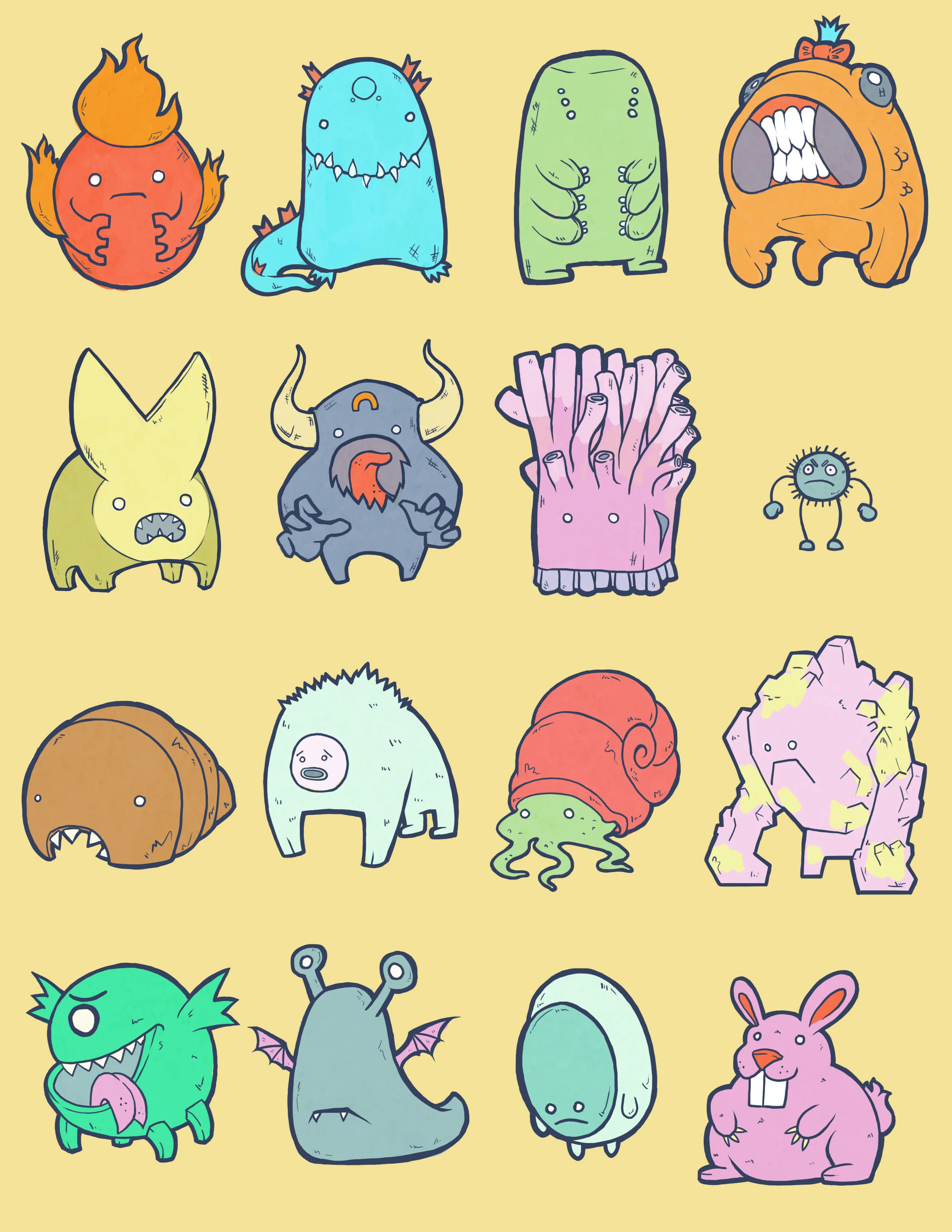 Do you recognize any of these monsters? Quite a few made it into the game! After combing through the original sketches together artist Luigi Guatieri put together a more polished 'style guide' image to show how the monsters should look, using the Glizzard monster as a model.